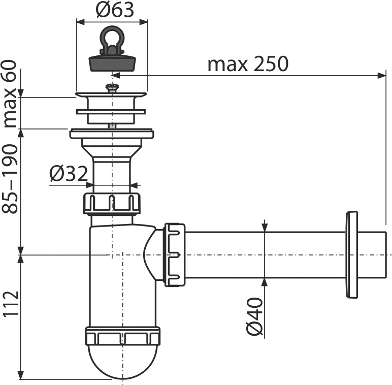 СИФОН ДЛЯ УМЫВАЛЬНИКА DN40 С ПЛАСТМАССОВОЙ PEШEТКОЙ DN63 Предназначен для умывальников. Технические параметры: Гидрозатвор: 58 mm Сток воды: 38 l/min Термическая устойчивость: 95 ˚C Свойства: Подключение к канализационной трубе Ø40 мм Материал: полипропилен Содержание комплекта: - корпус сифона - пробка из ПВХ - сливная решетка из нержавеющей стали - обрамление пластиковое