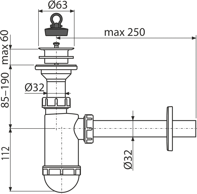 Сифон Alca Plast A420 для умывальника DN32 с пластмассовой peшeткой DN63