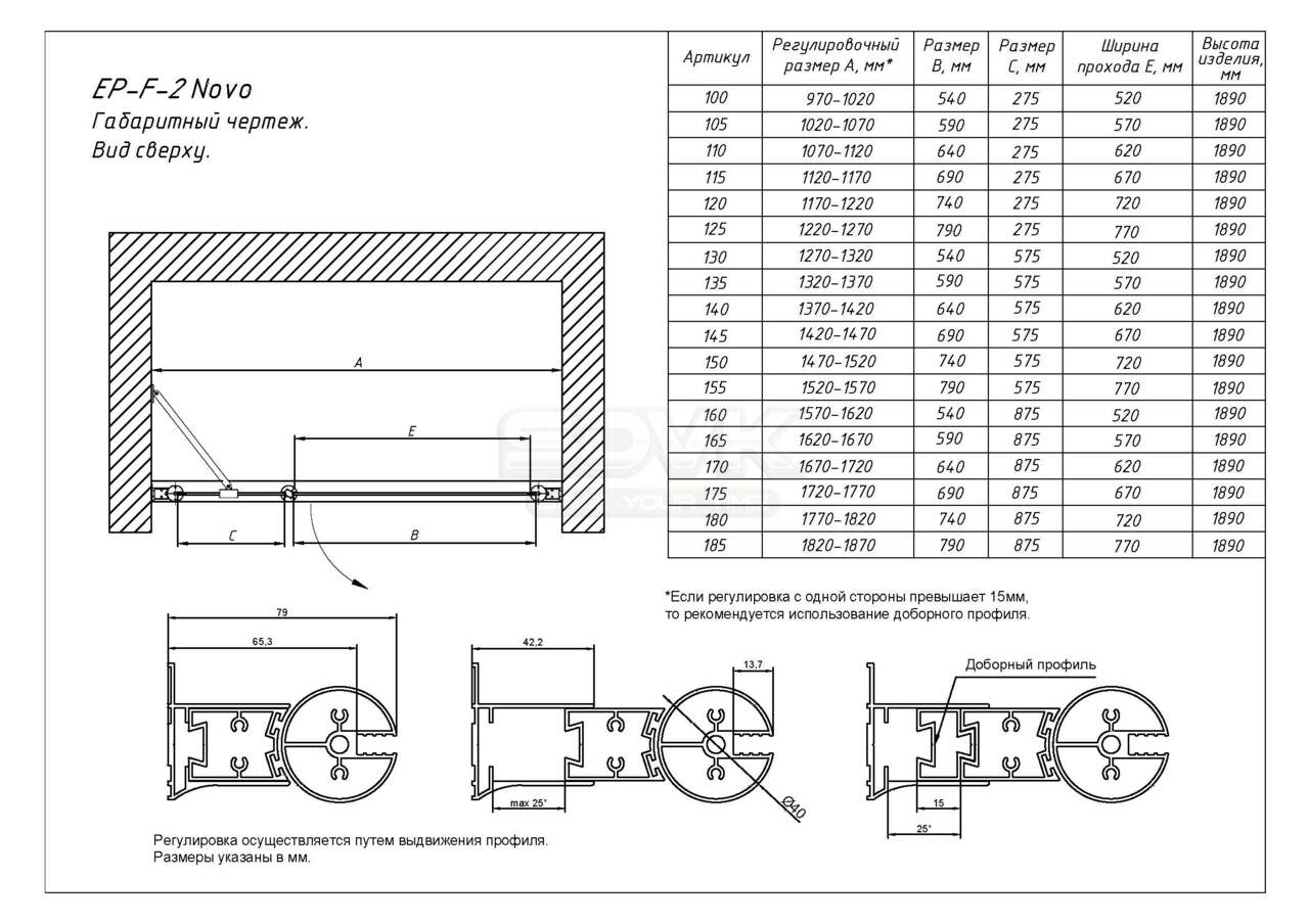 Регулируемая ширина: диапазон установки 117–122 см позволяет точно подогнать дверь под размеры ниши.