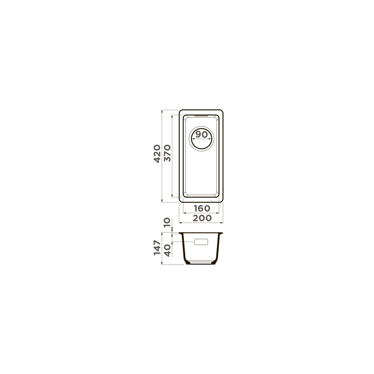 глубина чаши, мм