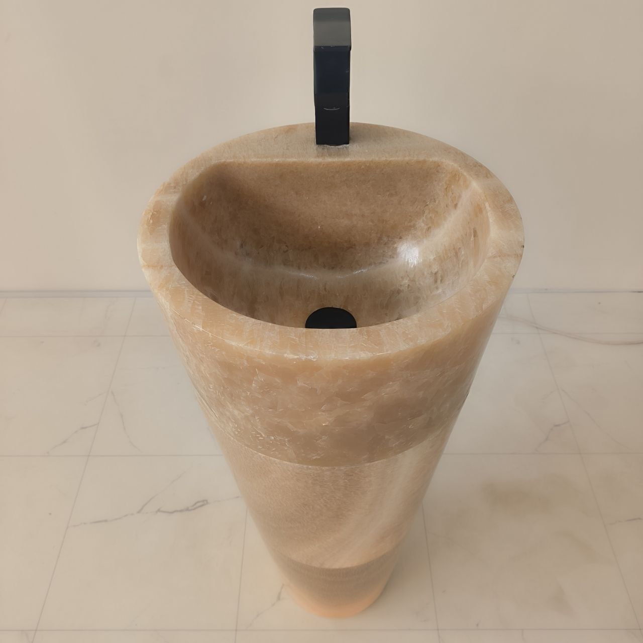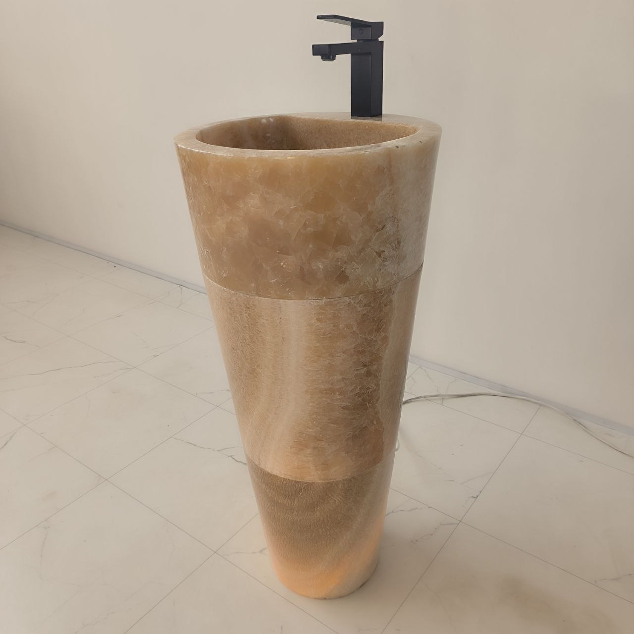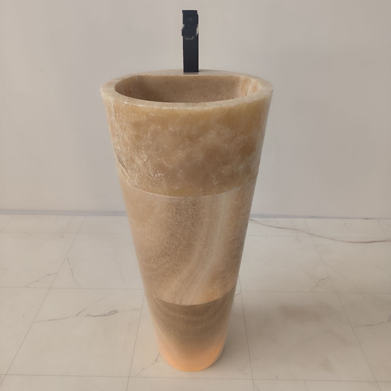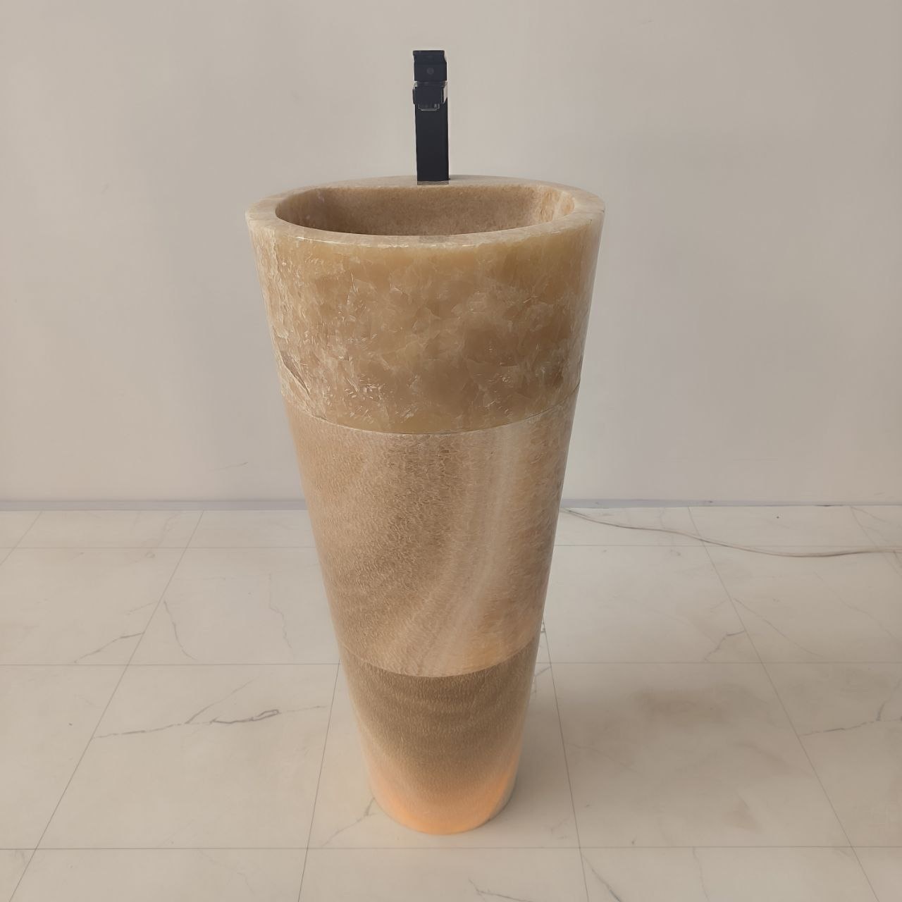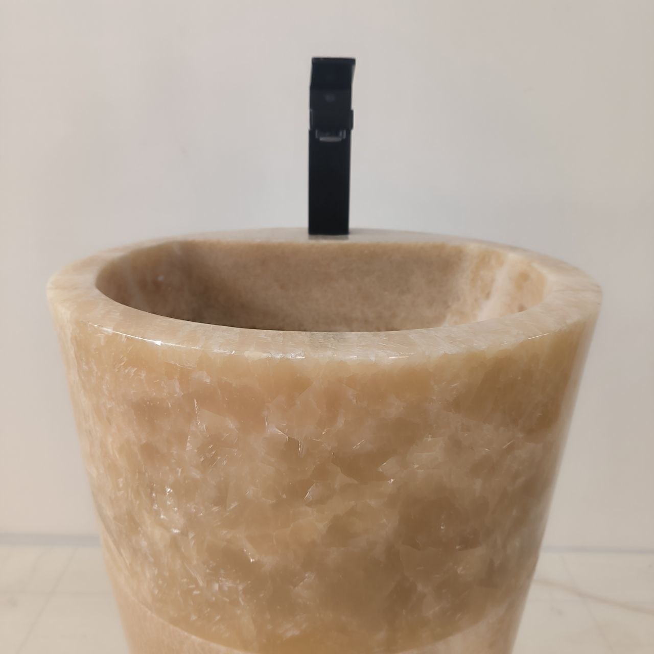 Представляем вам роскошную напольную раковину из оникса Sunset ON-04199 от бренда INDO-MARKET. Этот элегантный и стильный аксессуар прекрасно подойдет для вашей ванной комнаты, добавляя ей неповторимый шарм и изысканный вид. Раковина имеет уникальную форму усеченного конуса, которая придает ей особую привлекательность. Светло желтый цвет оникса создает атмосферу тепла и комфорта, делая ваш интерьер по-настоящему уютным. Наш продукт обладает высоким качеством благодаря использованию материала высочайшего класса - оникса. Он не только долговечен, но также обладает потрясающей стойкостью к повреждениям и пятнам. Сделайте свою ванную комнату идеальной с помощью напольной раковины из оникса Sunset ON-04199. Приобретая этот товар, вы получаете не только качество и стиль, но также уверенность в его долговечности благодаря 25-летней гарантии!