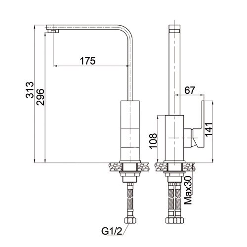 Оптимальные размеры излива: высота 26,9 см, длина 17,5 см — достаточно для комфортной работы с разными ёмкостями.