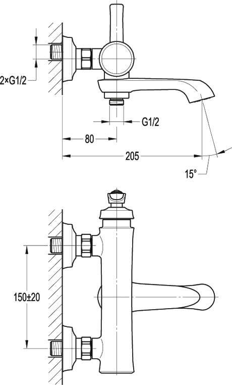 Оптимальная длина излива: 20,5 см — достаточно для комфортного наполнения ванны и использования.